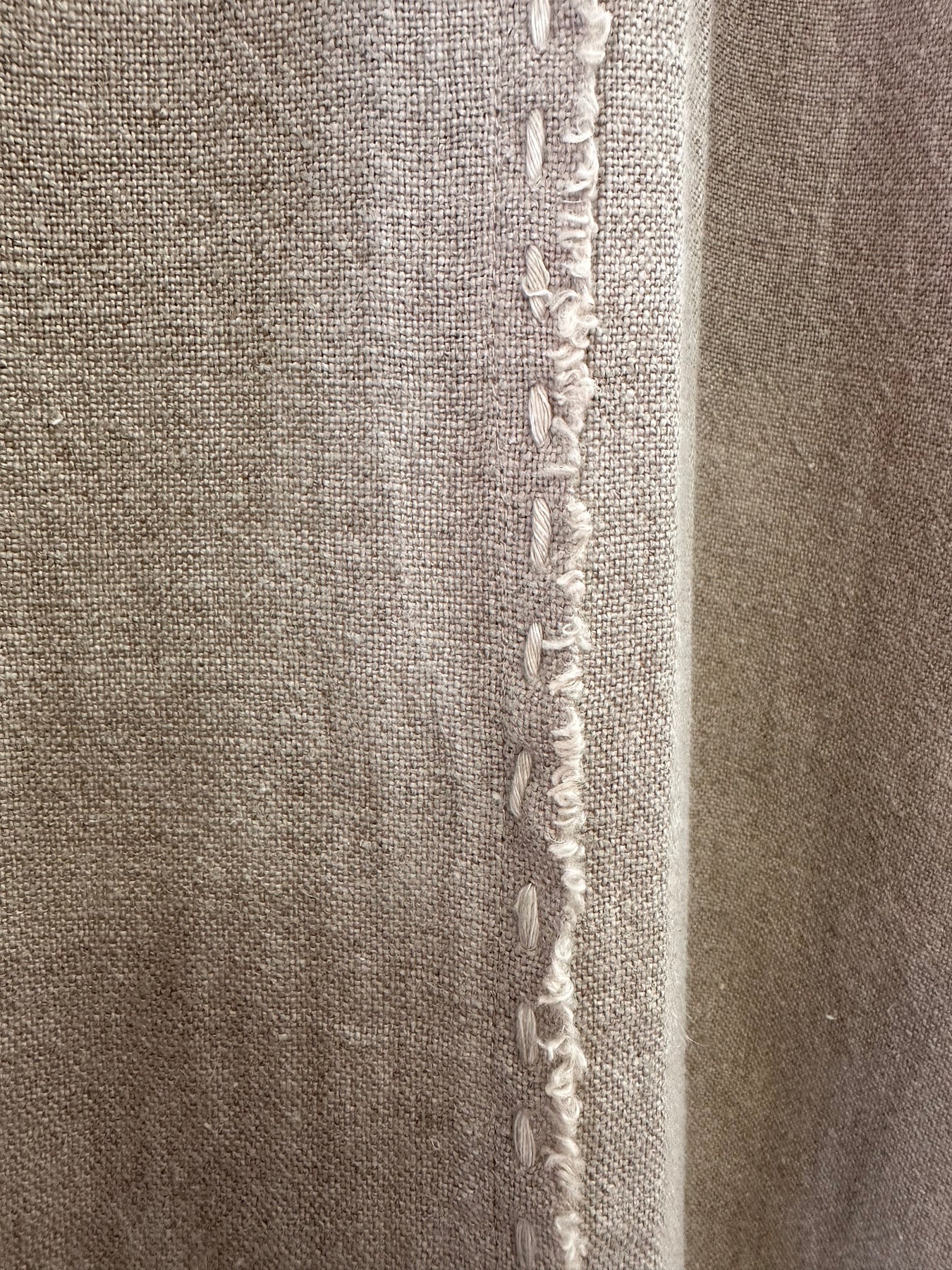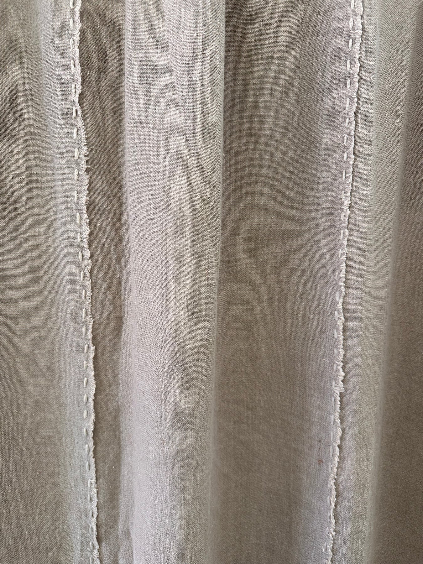 Details:  Pure linen natural. Soft washed. Strips with hand stitched detail in chunky Bamboo thread.
